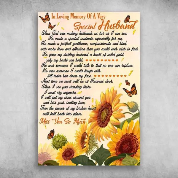 Sunflowers In Loving Memory Of A Very Special Husband Canvas Poster Print Farmhouse Sign Home Decor Birthday Wedding Housewarming Gift