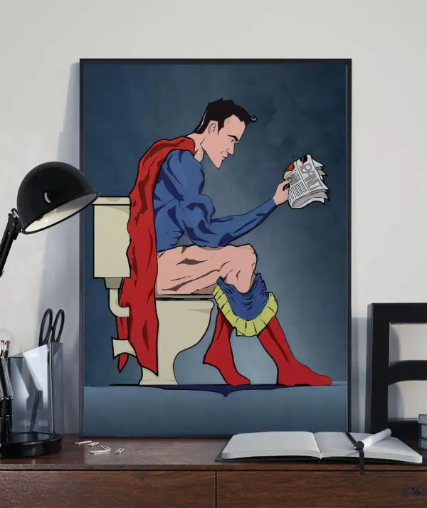 Funny Superman Bathroom Poster - Superhero Canvas Print