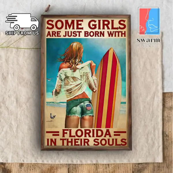 Surf Surfboard Surfing Poster Some Girls Are Just Born With Florida In Their Souls Poster Beach Home Living Decor Poster