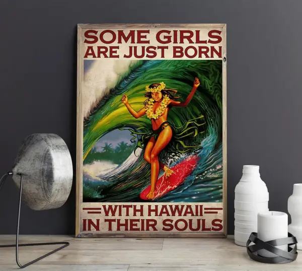 Surf Surfing Girl Poster Some Girls Are Just Born With Hawaii In Their Souls Poster Girls Hawaii Print Painting Poster
