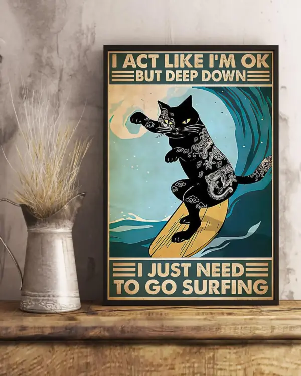 Surfer I Just Need To Go Surfing Vertical Poster Tattoo Cat Surfing Poster Cat Lover Poster Surfing Lover Vintage Poster No Frame
