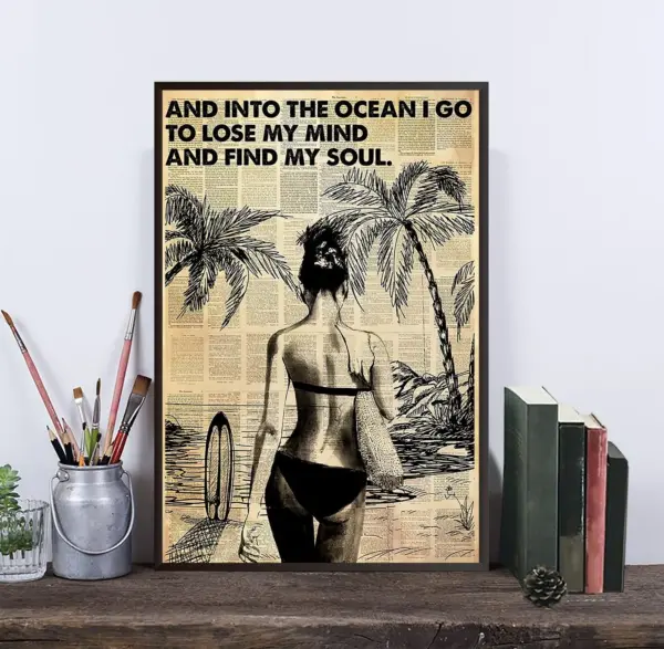Surfing And Into The Ocean I Go To Lose My Mind And Find My Soul Poster Surfing Poster Surfing Lover Ocean Poster Surfing Girl 2107