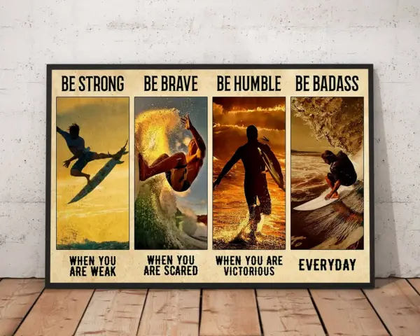 Surfing Be Strong Be Brave Be Humble Be Badass Poster Surfing Poster Surfing Print Surfing Lover Wall Art Decor Poster Gift 2207