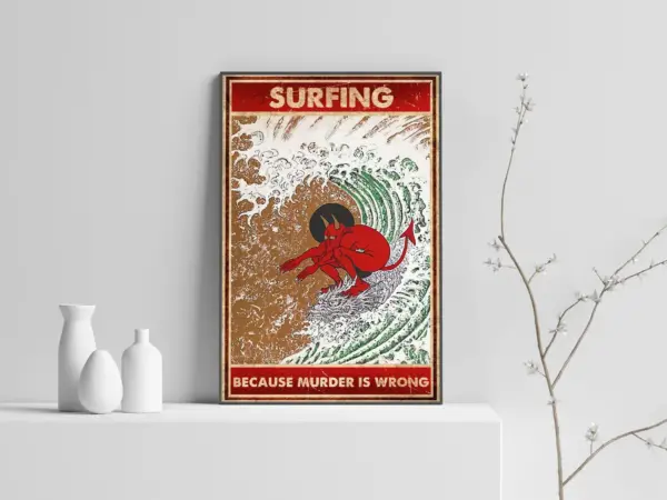 Surfing Because Murder Is Wrong Poster Surfing Art Print Demon Art Satan Poster Vintage Poster Sport Poster Signs For Home