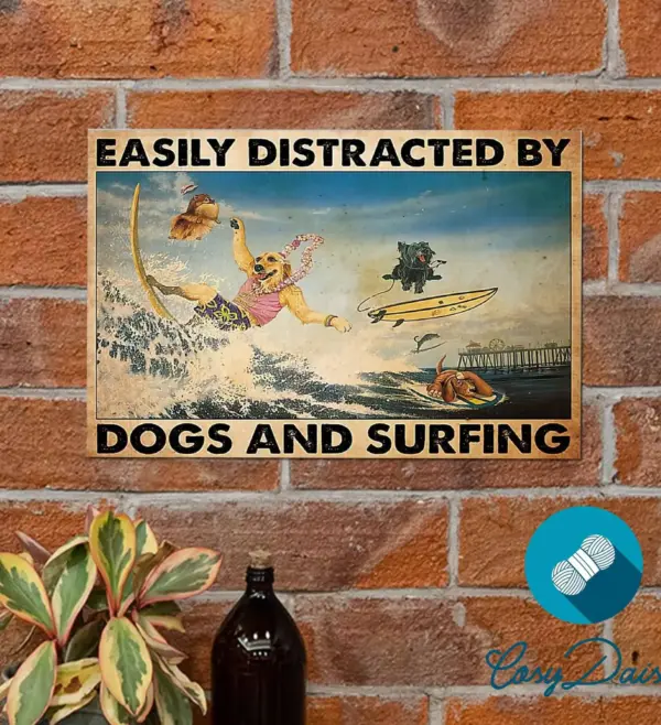 Surfing Poster Easily Distracted By Dogs And Surfing Wall Art Home Decor Poster Print
