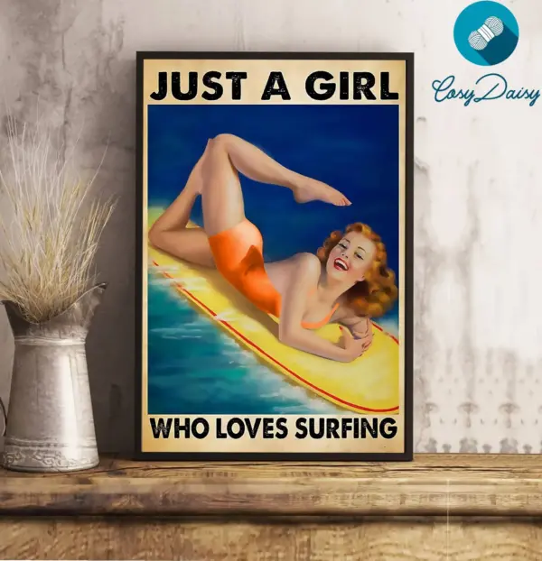 Surfing Poster Just A Girl Who Loves Surfing Wall Art Home Decor Poster Print