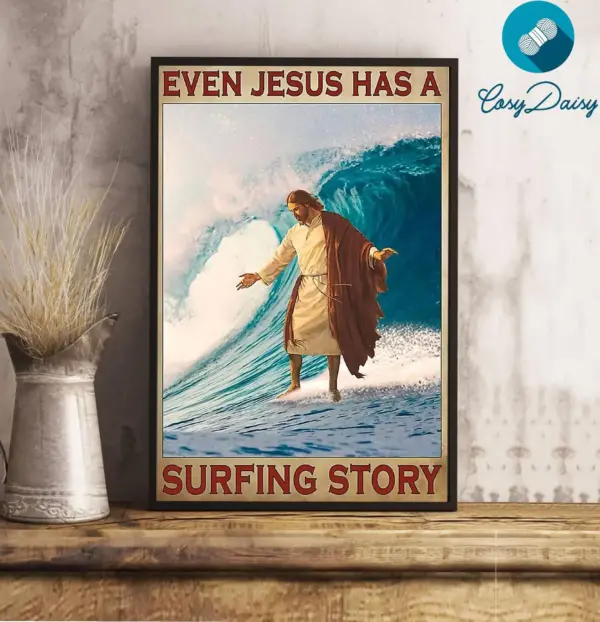 Surfing Poster Surfing Even Jesus Has A Surfing Story Wall Art Home Decor Poster Print