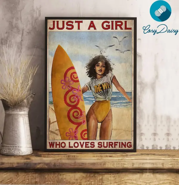 Surfing Poster Surfing Just A Girl Who Loves Surfing Wall Art Home Decor Poster Print