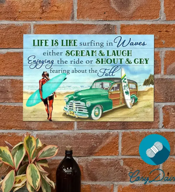 Surfing Poster Surfing Life Is Like Surfing In Waves Wall Art Home Decor Poster Print