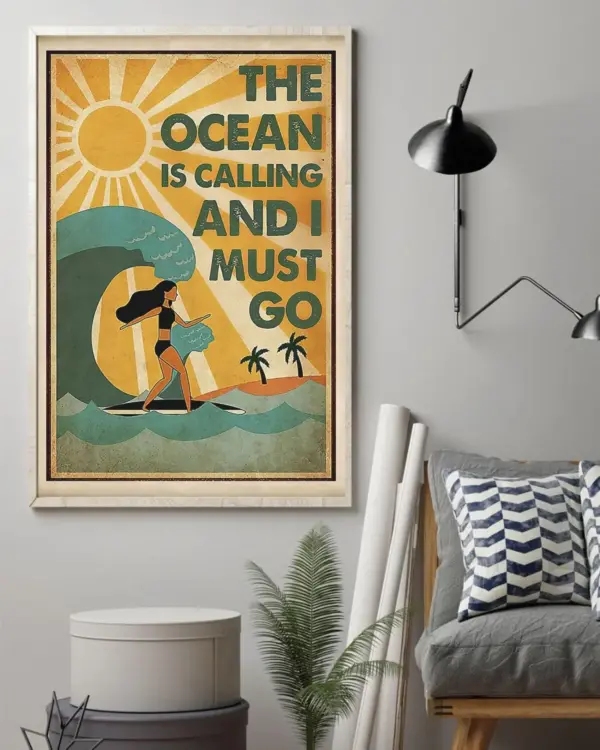 Surfing The Ocean Is Calling Poster And I Must Goa Posterars Boots Poster Vintage Surfing Poster Surfing Lover Gift Vintage Surfing Poster