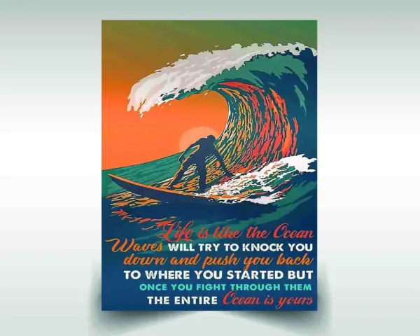 Inspirational ocean wave canvas poster. Perfect wall art depicting life's challenges and triumphs. High-quality print on canvas.