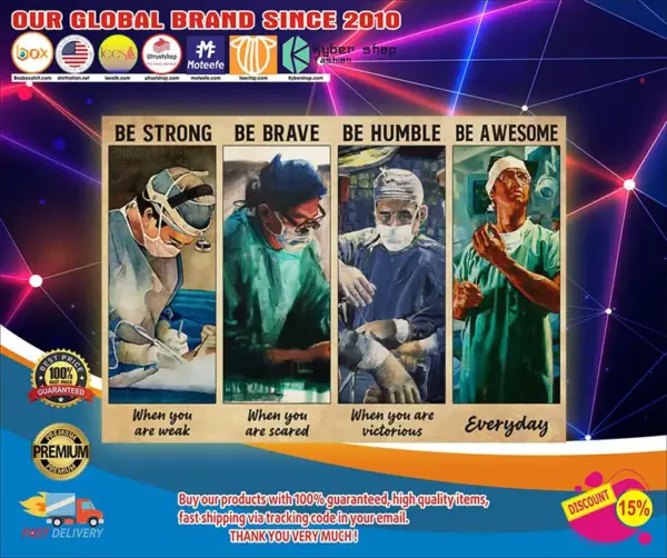 Surgeon Doctor Be Strong Be Brave Be Humble Be Badass Poster