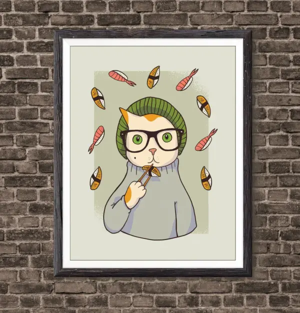 Sushi Cat Poster Print For Cat Lover Gift Cat Poster Cat Art Cat Illustration Cat Wall Art Cat Artwork Cat Print Cat Decor
