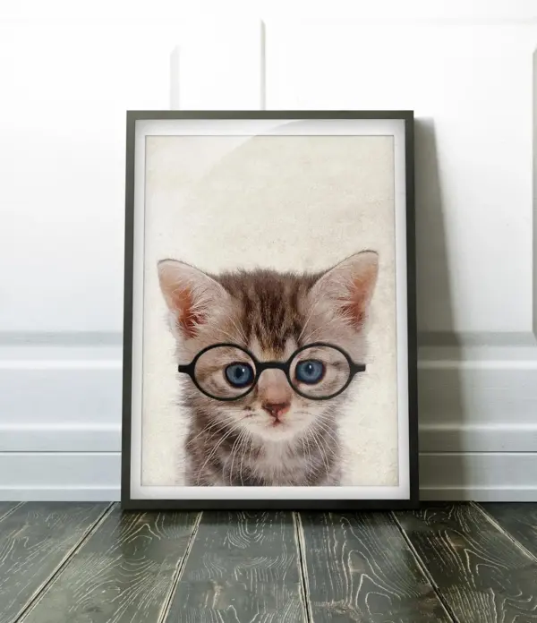 Sweet Kitten With Round Glasses Print Home Decor Wall Art Poster Gift Birthday Kitten Lover Gift Animal Print