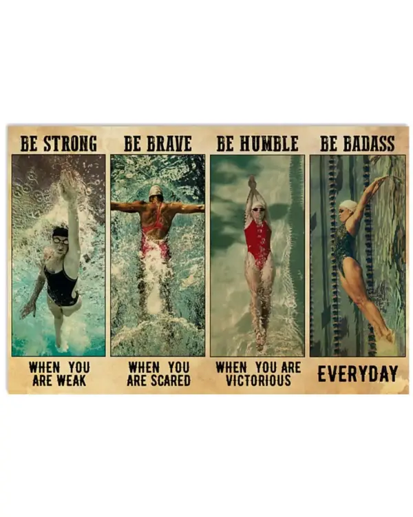 Motivational Swimming Poster: Be Strong, Brave, Human, Badass