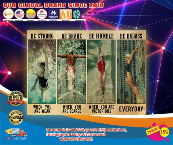 Swimming Be Strong Be Brave Be Humble Be Badass Poster
