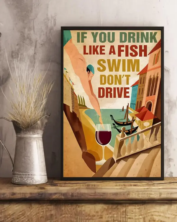 Swimming Drink Like A Fish Vertical Poster Poster Art Best Gifts Ever Signs For Home Wall Decoration No Frame