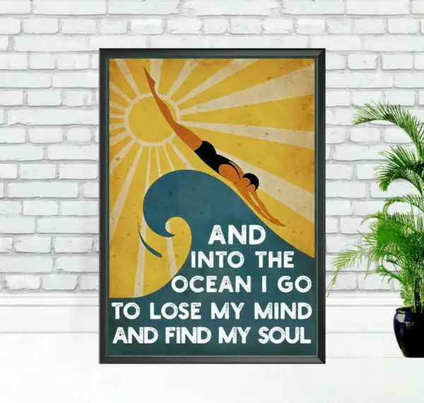 Swimming Girl Poster And Into The Ocean I Go Lose My Mind And Find My Soul Print Love Ocean Poster Girl Loves Swimming Art Ocean Poster