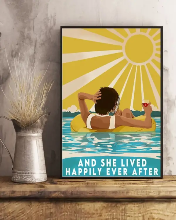 Swimming Poster And She Lived Happily Ever After Beach Summer Time Girl Surfing Love Surfing Swimming Lover Vertical Poster No Framed
