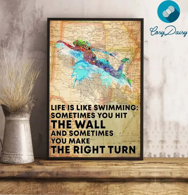 Swimming Poster Swimmer Life Is Just Like Swimming Wall Art Home Decor Poster Print