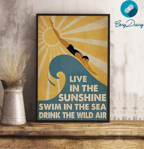 Swimming Poster Swimming Live In The Sunshine Swim In The Sea Wall Art Home Decor Poster Print