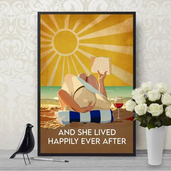 Swimming Summer Time And She Lived Happily Ever After Poster Vacation Beach Poster Retro Vintage Poster Framed Matte Canvas