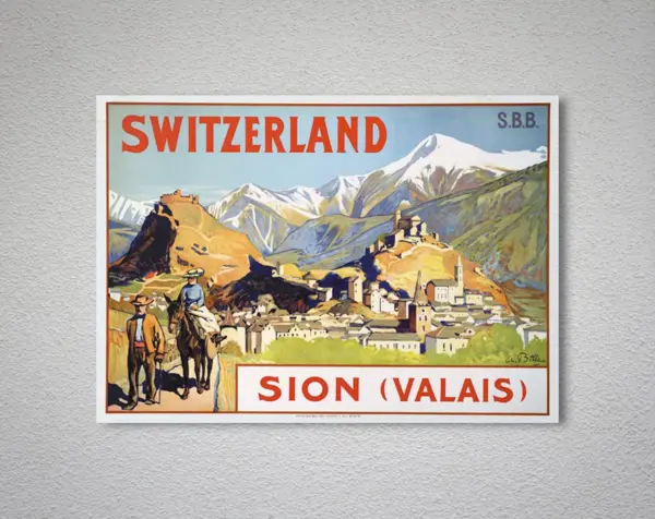 Switzerland Sion Valais Vintage Travel Poster Poster Paper Sticker Or Canvas Giclee Print Gift Idea Christmas Gift