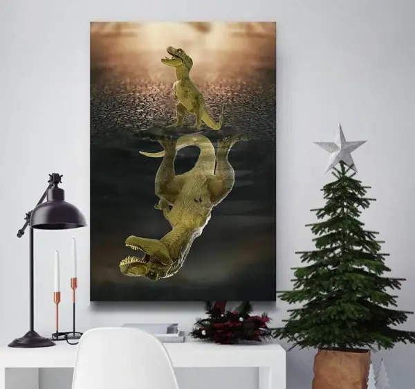 T Rex Dinosaur Water Reflection Canvas Wall Hang Print Poster Painting Home Decor House Decoration
