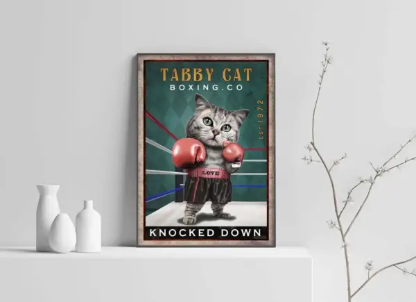 Tabby Cat Boxing Co Knocked Down Poster Cat Art Print Tabby Cat Poster Tabby Cat Print Cat Love Gift Cat Poster Poster No Frame