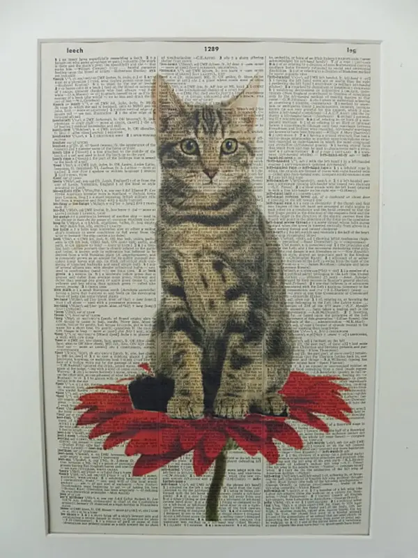 Tabby Cat On Red Flower Wall Print No 22 Writers Gifts Librarian Gifts Book Club Gifts Book Page Gifts Eco Friendly Gifts