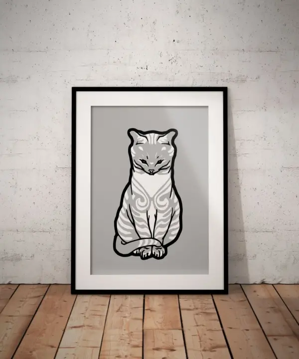 Tabby Cat Print Grey And White Cat Wall Art Poster Art Print Cat Print Wall Decor Wall Art Cat Lover Gift Black Cat Portrait