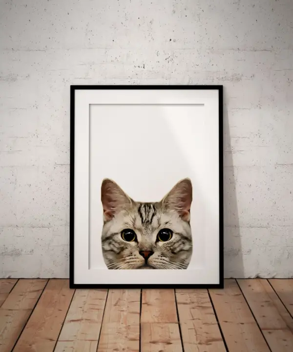 Tabby Cat Print Wall Art Poster Art Print Peeking Cat Print Wall Decor Grey Tabby Wall Art Personalised Cat Portrait Fun Black Cat Print
