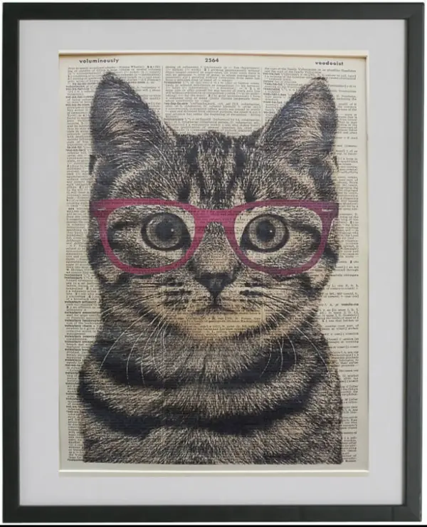 Tabby Cat Wearing Purple Glasses Wall Art No 208 Veterinary Gifts 1St Wedding Anniversary Gifts Writer S Gifts Dictionary Wall Art