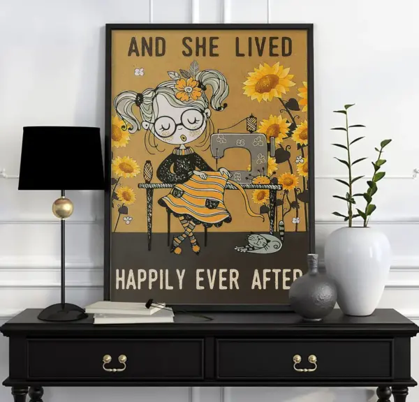 Tailor Girl And She Lived Happily Ever After Poster Sewing Lover Poster Sewing Canvas Print Gift For Daughter Love Sewing Wall Decor