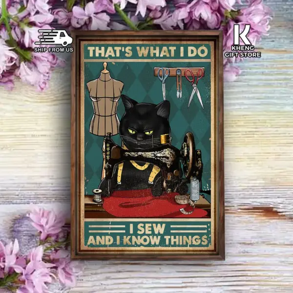 Tailor Sewing Black Cat Lovers That S What I Do I Sew And I Know Things Poster Home Living Decor Poster