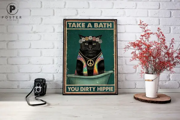Take A Bath You Dirty Hippie Poster Cat Poster Print Wall Art Cat Lover Gift Wall Decoration Bathroom Poster Hanging Poster Best Gift Ever