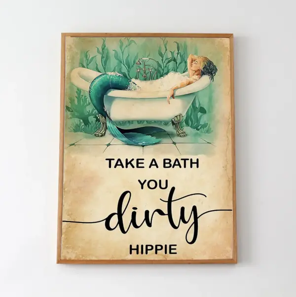 Take A Bath You Dirty Hippie Poster Mermaid Painting Mermaid Poster Mermaid Wall Art Best Gift For Mermaid Lover Mermaid Wall Decor