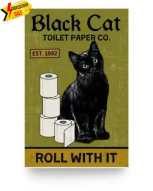 Take A Bath You Dirty Hippie Vintage Poster Black Cat Print Funny Bathroom Sign Bathroom Wall Art Funny Kitty Poster Sign For Home