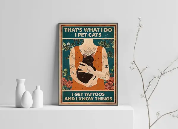 Tattoo Cat Poster That S What I Do I Get Tattoo And I Know Things Black Cat Print Funny Cat Wall Art Grumpy Cat Canvas Cat Home Decor