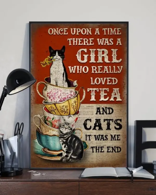 Tea Cat Once Upon A Time Vertical Poster Vintage Cat Poster Cat Lovers Tea Lovers Ideal Gift For Book Lovers Vertical Poster No Framed