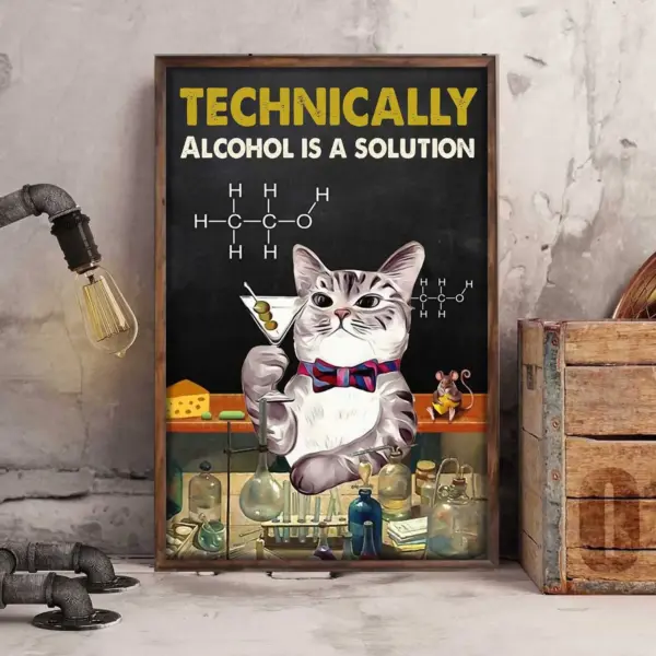 Technically Alcohol Is A Solution Funny Poster Chemical Science Scientist Poster Cat Lovers Gift Drinking Poster Home Living Decor Poster