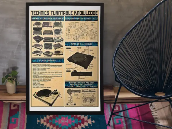 Technics Turntable Knowledge Poster Framed Matte Canvas