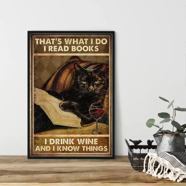 That S What I Do Black Cat Poster I Read Books I Drink Wine And I Know Things Poster Cat Owner Gifts Vintage Wall Art No Frame
