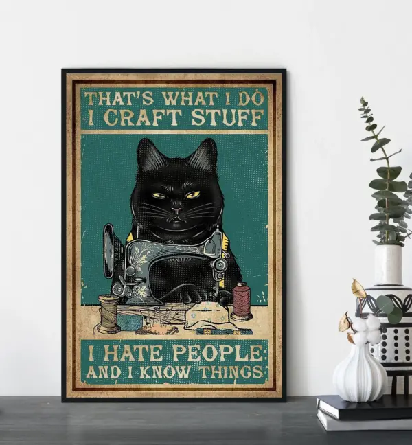 That S What I Do I Craft Stuff I Hate People And I Know Things Vintage Black Cat Poster Cat And Sewing Sewing Lover S Wall Art 1504