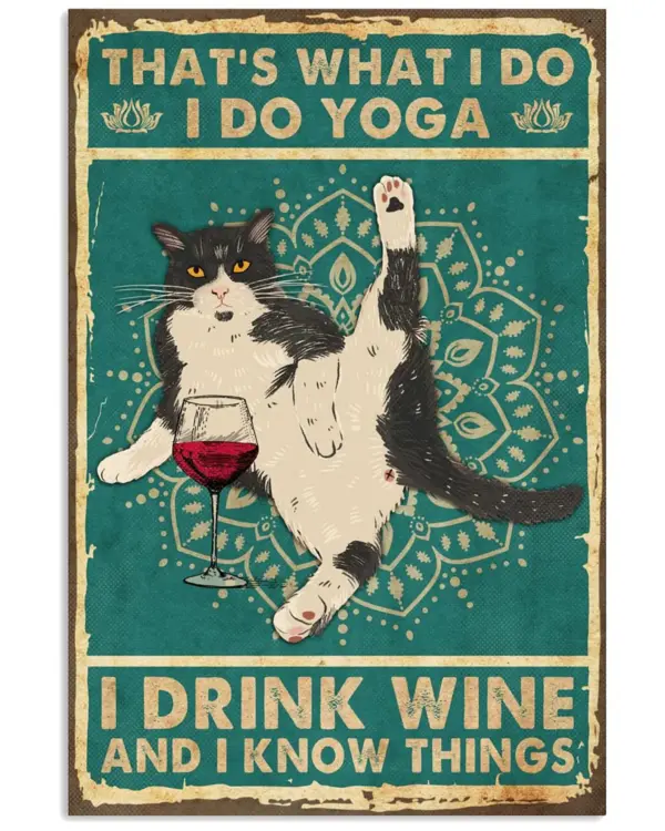That S What I Do I Do Yoga Drink Wine Know Things Vertical Poster Funny Cat Baking Art Cat Lover Gift