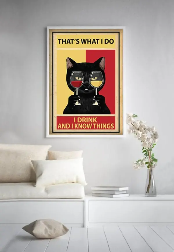 That S What I Do I Drink And I Know Things Poster Black Cat Poster Cat Wine Poster Glasses Poster Wine Poster Gift For Cat Lovers