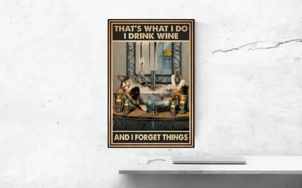That S What I Do I Drink Wine And I Forget Things Poster Funny Bathroom Poster Printable Art Funny Poster Home Decor Cat Lover Poster