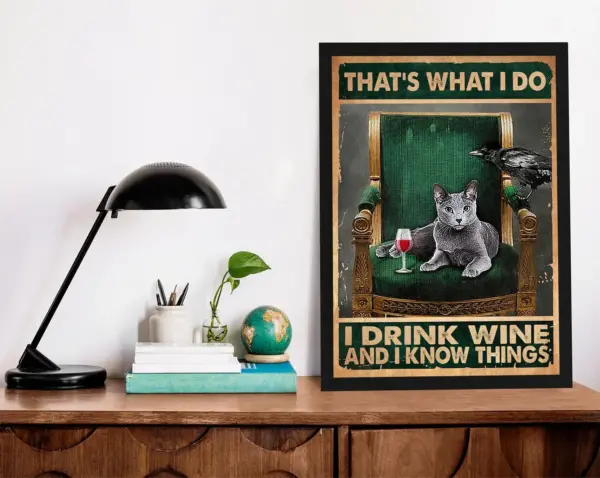 That S What I Do I Drink Wine And I Know Things Poster Cat Drink Wine Wall Art Royal Queen Cat Art Print Cat Lover Home Decor Cat Owners