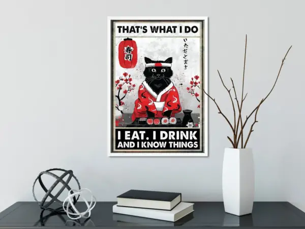 That S What I Do I Eat I Drink And I Know Things Poster Black Cat Print Drinking Poster Food Poster Japanese Cat Poster Home Decor