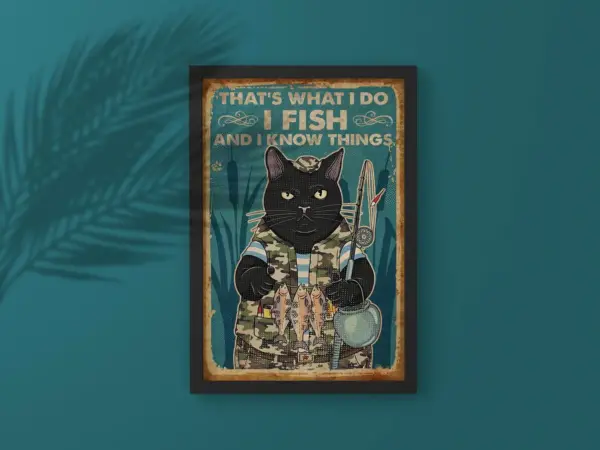 That S What I Do I Fish And I Know Things Poster Black Cat Print Cat Lover Gift Black Cat Art Cat Wall Art Black Cat Wall Decor